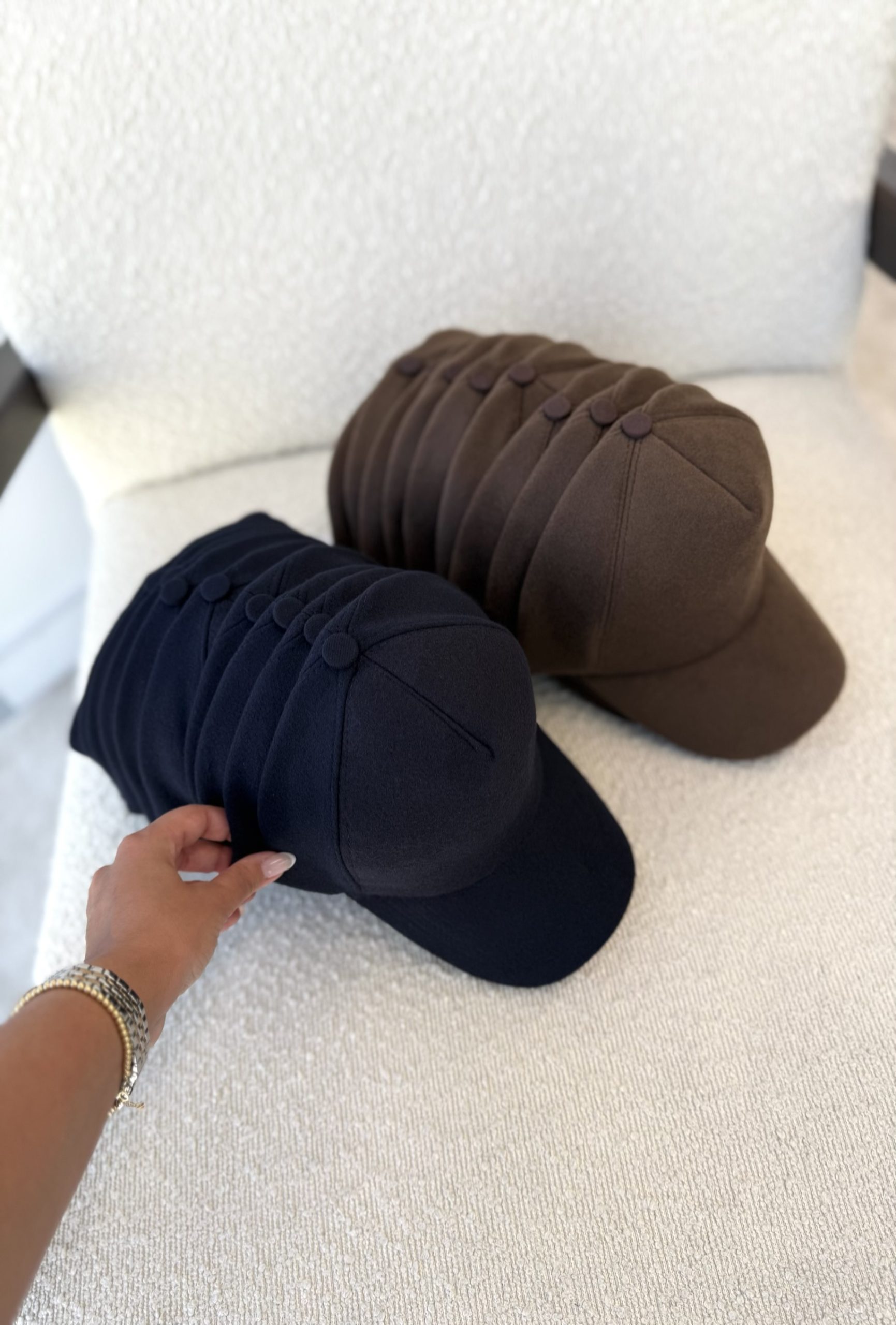 کلاه فوتر : قهوه ای / سرمه ای کلاه کتان : قهوه ای / سرمه ای کلاه چرم : قهوه ای تیره